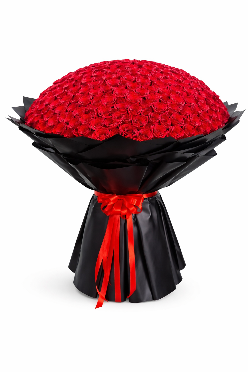 Transform your special moments into unforgettable memories with our 500 Red Roses Bouquet, a true masterpiece of elegance and romance. This luxurious bouquet is crafted with 500 handpicked fresh red roses, each symbolizing love, passion, and devotion. Expertly arranged and wrapped in sophisticated black paper, accented with a bold red ribbon, this bouquet is designed to make a lasting impression.