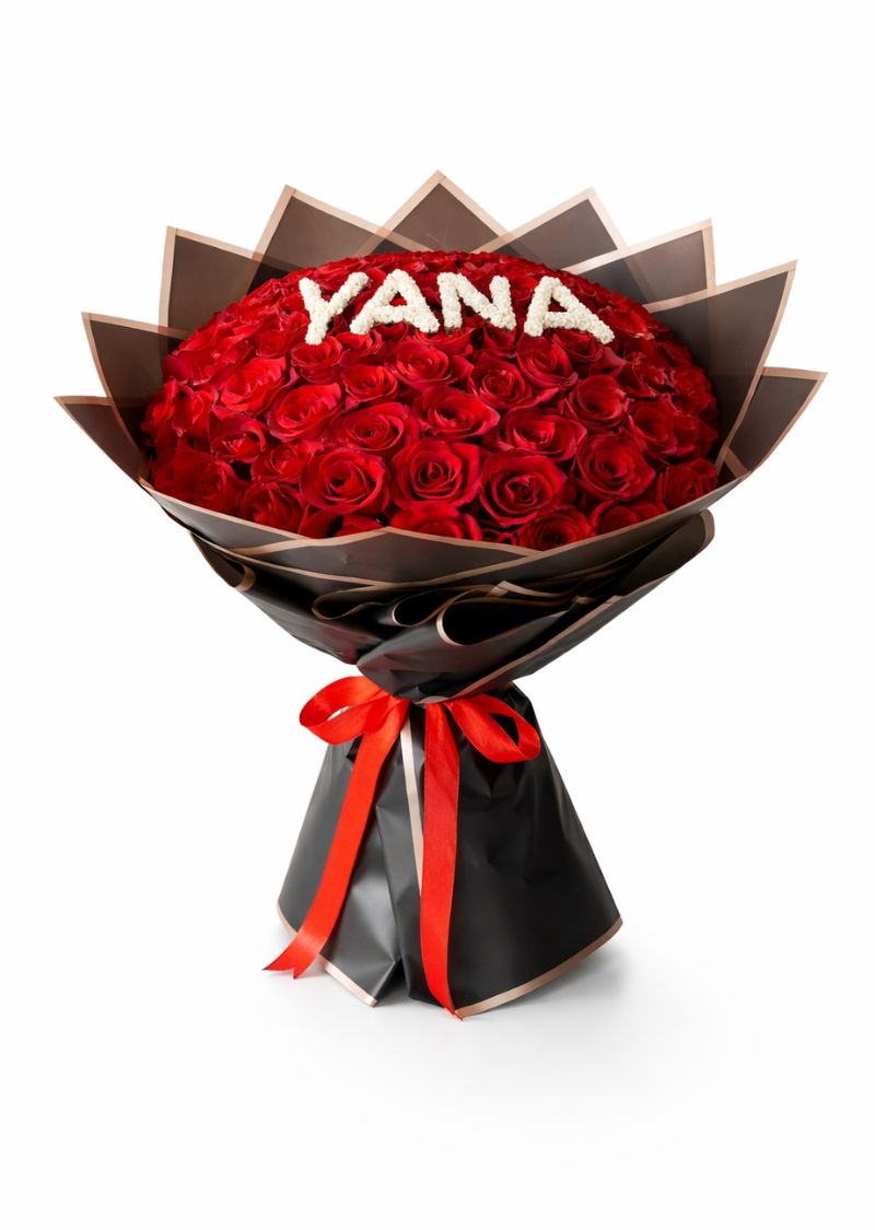Luxury Custom Name Red Roses Bouquet in Dubai
