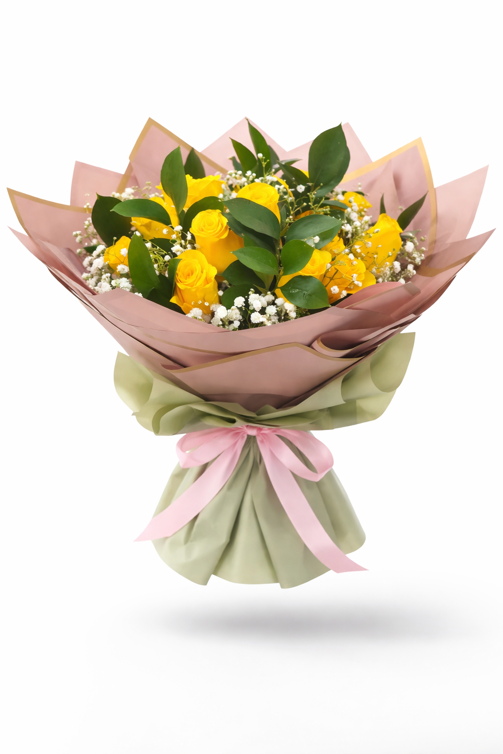 - Accompaniments: Yellow roses pair beautifully with other flowers and greenery. Consider adding white lilies, baby’s breath, or eucalyptus to enhance the bouquet’s overall appearance.