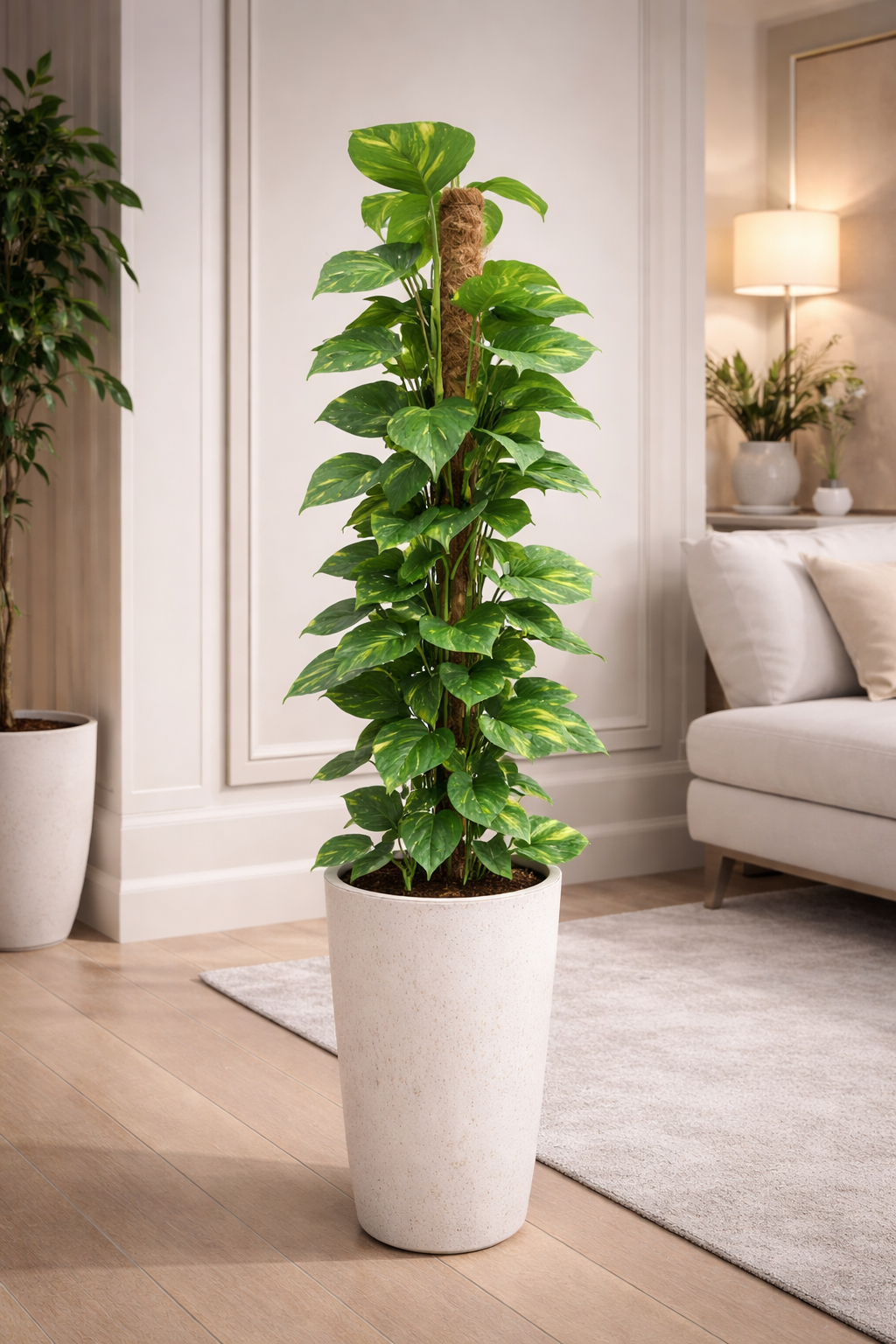 Bring effortless greenery and luxury style into your space with our Golden Pothos Money Plant with Moss Pole, a premium indoor climbing plant loved for its vibrant variegated leaves and low-maintenance nature. This elegant plant is trained vertically on a natural moss pole, making it a perfect statement piece for modern homes, offices, hotels, and commercial interiors.
