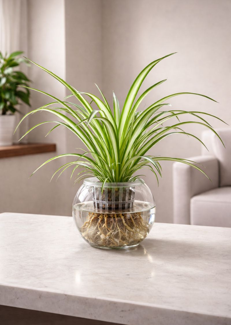 Indoor Water Spider Plant – Modern Glass Hydroponic Houseplant