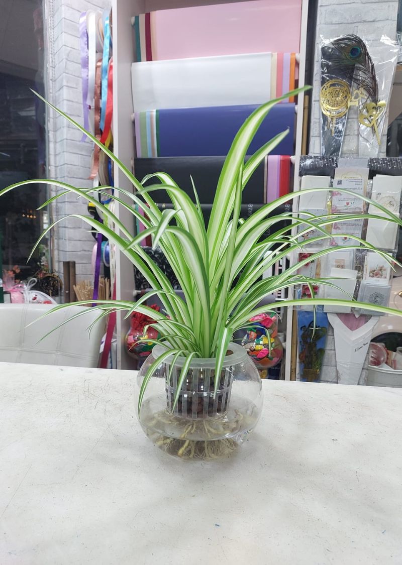 Bring effortless greenery into your space with our Indoor Water Spider Plant, beautifully displayed in a clear glass hydroponic bowl. This elegant, soil-free plant showcases its healthy root system in water, creating a clean, modern aesthetic perfect for homes, offices, and gifting.