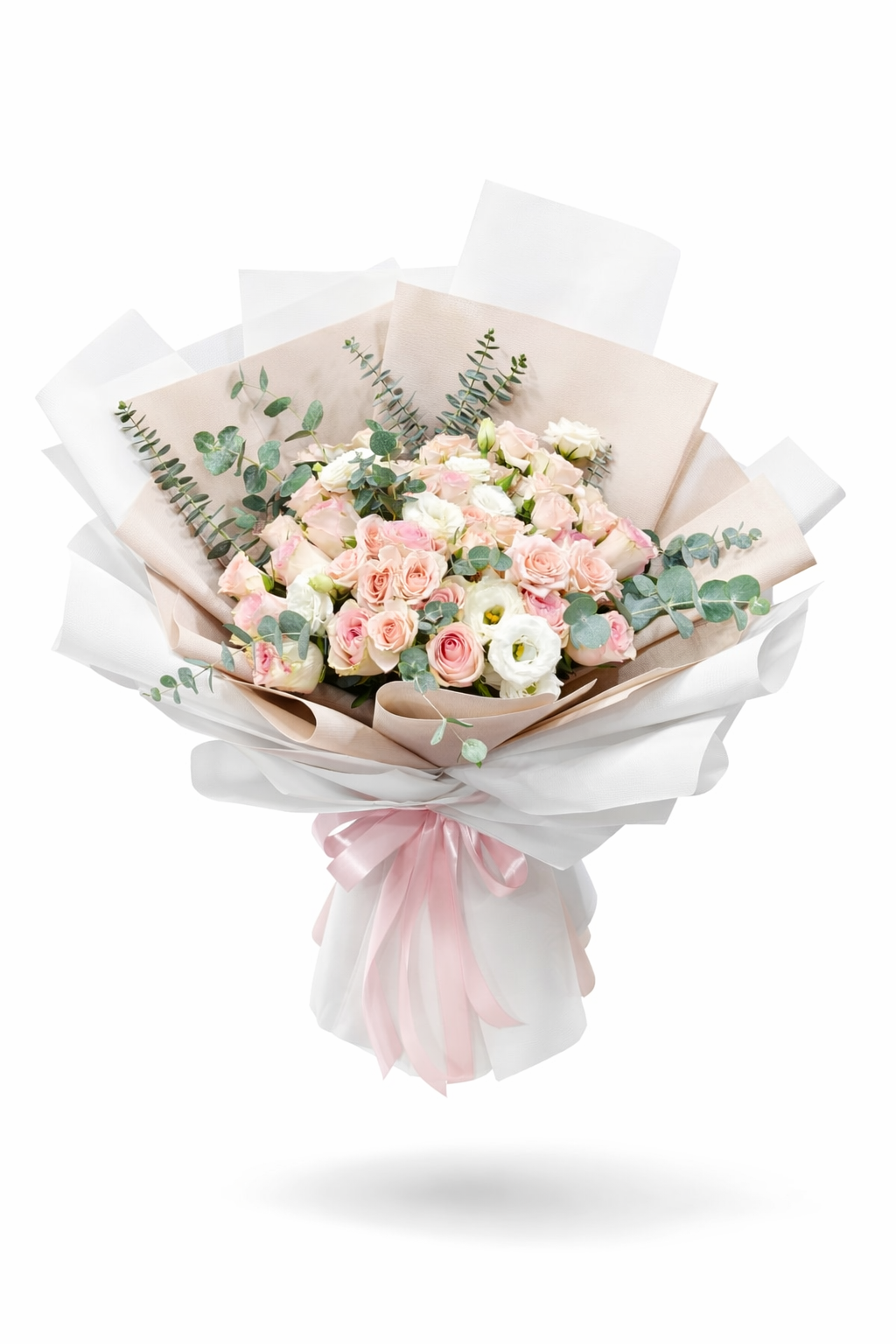 Luxury Pink & White Rose Bouquet – Premium Fresh Flower Arrangement